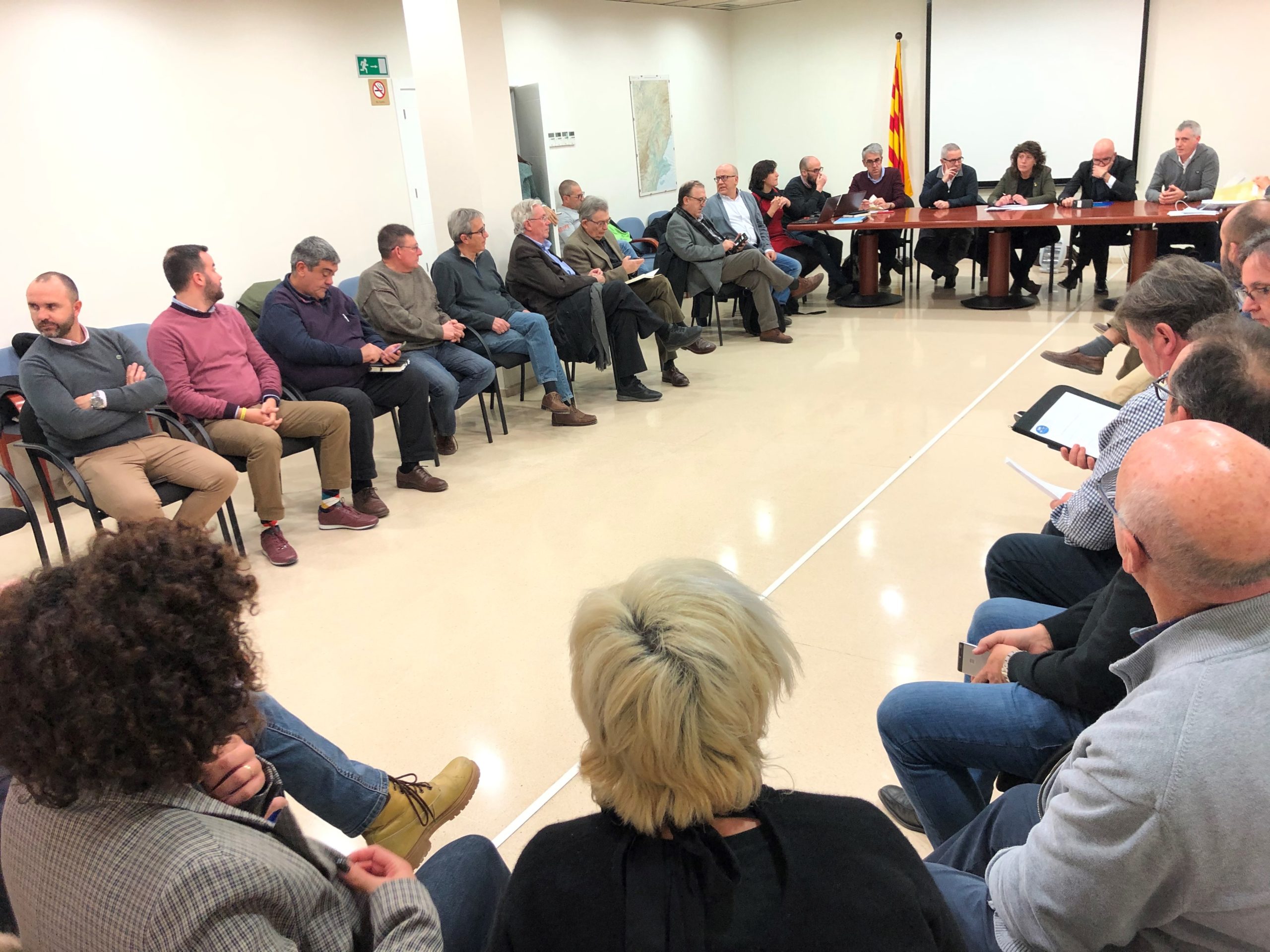 Moment de la reunió amb representants de regants, arrossaires, muscleres, consells comarcals, ajuntaments i sindicats agraris. Foto: Govern.cat.