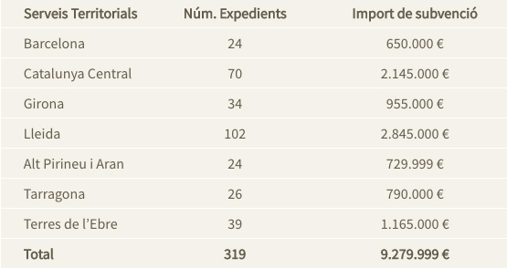 Val a dir també que, com preveu la normativa, s’ha prioritzat aquest ajut en relació a la resta d’ajuts del Contracte Global d’explotació (CGE), i s’ha resolt favorablement la totalitat dels projectes sol·licitats que compleixen amb els requisits de la convocatòria.