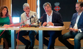 El matí d’aquest divendres s’ha presentat en roda de premsa el Pla de Govern 2015-2019. La convocatòria l’han encapçalat l’alcalde de Blanes, Miquel Lupiáñez, acompanyat dels portaveus de les tres forces que formen l’equip de govern: Quim Torrecillas (CDC), Àngel Canosa (ERC) i Pepa Celaya (PSC). També han participat en la roda de premsa, que ha tingut lloc a la Sala de Plens, la resta de regidors i regidores que formen l’equip de govern.