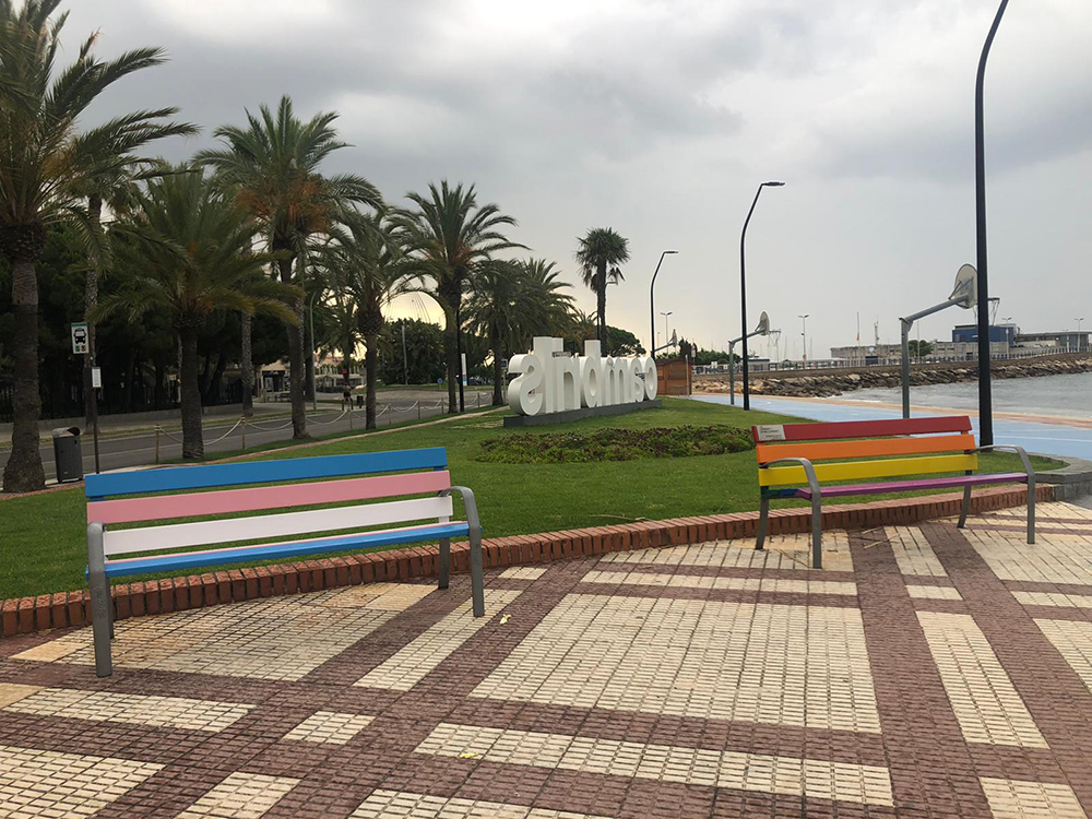 Coincidint amb la commemoració, s’han pintat dos bancs amb els colors de la Transexualitat, que s’afegeixen al mobiliari LGBTI