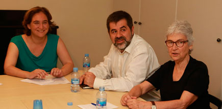 Colau, Sànchez i Casals, a la reunió d’ahir.