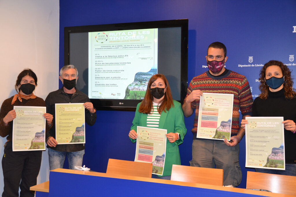 El dissabte dia 9 es fa la primera activitat a l’Espluga Calba, amb una visita a la cooperativa tèxtil en actiu més antiga de Catalunya (Cooperativa John-Fil), a les 10.00 hores). Com a segona activitat es proposa una ruta per les plantes tintòries, per descobrir les plantes silvestres (10.30 hores), un taller de tints naturals (12.30 hores) i un taller de cloenda de la jornada (16.00 hores).