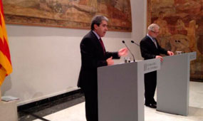 El conseller de la Presidència, Francesc Homs, i el president del CATN, Carles Viver i Pi-Sunyer, durant la presentació de l’informe aquest dilluns al Palau de la Generalitat.