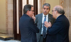 Artur Mas, Francesc Homs i Andreu Mas-Colell en el Parlament.
