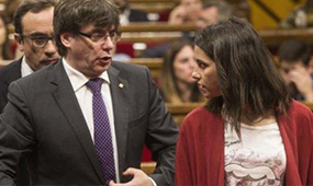 El president del Govern, Carles Puigdemont, al costat de la líder de Cs, Inés Arrimadas, al Parlament. Foto: Regio7/Quique García/efe.