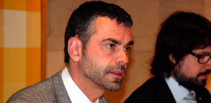 El conseller de Territori i Sostenibilitat, Santi Vila, acompanyat del secretari d’Infraestructures i Mobilitat, Ricard Font, aquest dijous al matí.