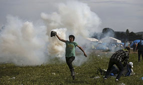 Gasos lacrimògens al camp d’Idomeni, en una imatge de l’abril. Foto: REUTERS.