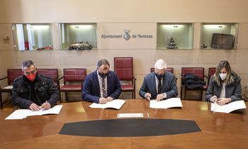 Ajuntament de Terrassa, Cecot, CCOO i UGT han signat aquest matí la reedició del pacte amb la voluntat de recuperació del teixit productiu de la ciutat, afectat, tant a a nivell social com econòmic, que ha provocat la Covid-19