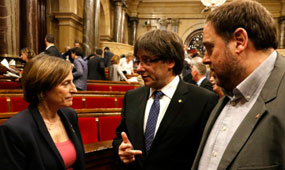 Forcadell, Puigdemont i Junquersa, en el darrer ple de política general. Foto: ACN.