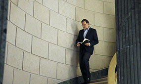 Rajoy revisant les seves anotacions abans de comparèixer i explicar la seva reunió d’ahir amb Rivera Foto: Chema Moya/EFE.