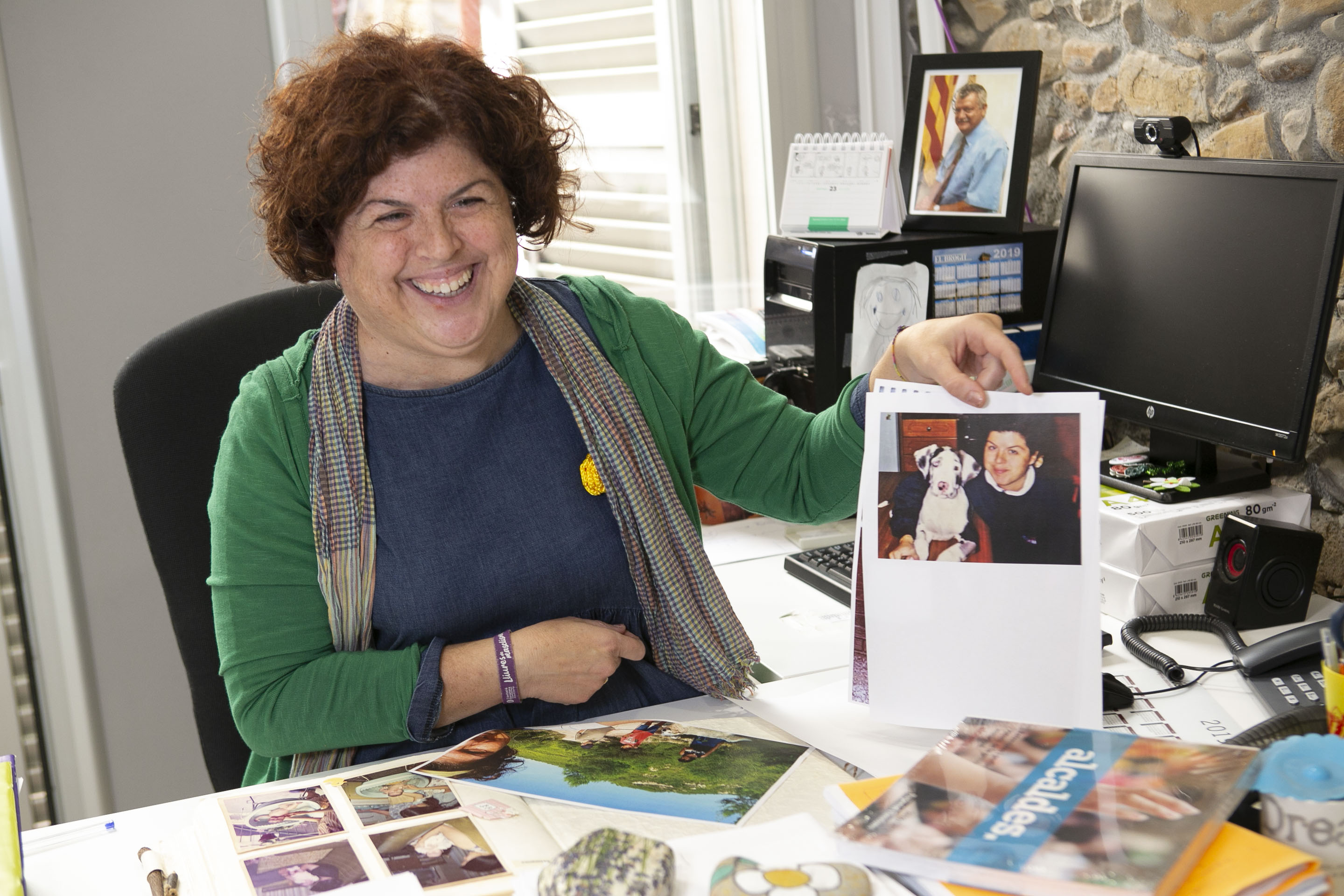 En tinc una altra d’adolescent, que és l’etapa dels canvis i dels descobriments; de la rebel·lia i la reivindicació. A la foto hi surto amb un gos, ja que a casa sempre hem tingut i acollit molts animals. Ara hi ha protectores, però abans havia arribat a comptar sis o set gossos a casa, tots acollits. En la foto estic abraçada a un cadellet que em feia riure molt. Però quan va marxar també em va fer sortir llàgrimes. Un record de per vida.