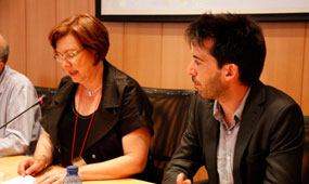 L’alcaldessa de Tàrrega, Rosa M. Perelló, i el director artístic de FiraTàrrega, Jordi Duran, a la roda de premsa de balanç del certamen.