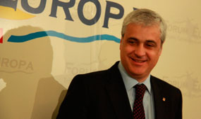 Germà Gordó, conseller de Justícia, en la conferència al Fòrum Europa aquest dilluns.