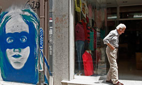 Un home passa aquest dimarts davant d’una botiga a Atenes.