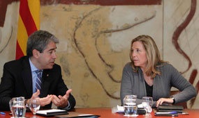 El portaveu del Govern, Francesc Homs, i la vicepresidenta, Joana Ortega, durant la reunió del consell executiu d’aquest dimarts.