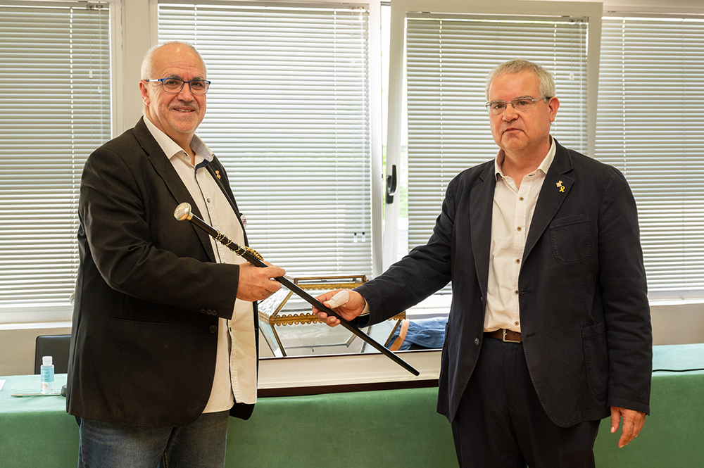 El paer en cap sortint, Ramon Augé, va lliurar la vara de paer en cap a Joan Santacana.