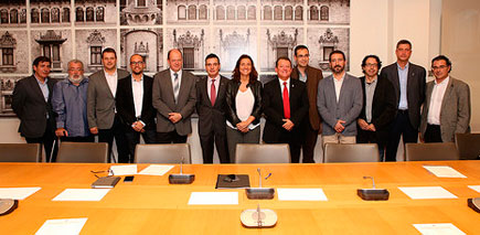 La presidenta de la Diputació, Mercè Conesa, i els presidents de deu consells comarcals de la demarcació signen el Pla d’Operacions de Tresoreria per a Consells Comarcals.