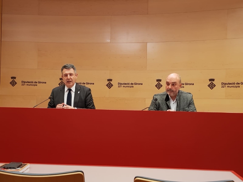 El president de la Diputació de Girona, Miquel Noguer, i el diputat de Suport a les Entitats Locals, Josep Maria Bagot, han presentat aquest matí, a la sala Ferran Agulló de l’ens supramunicipal, el fons econòmic extraordinari que la Diputació ha creat aquest 2022 per minimitzar els perjudicis causats per la pandèmia de la covid-19 a les hisendes dels ens locals i contribuir a la seva recuperació econòmica.