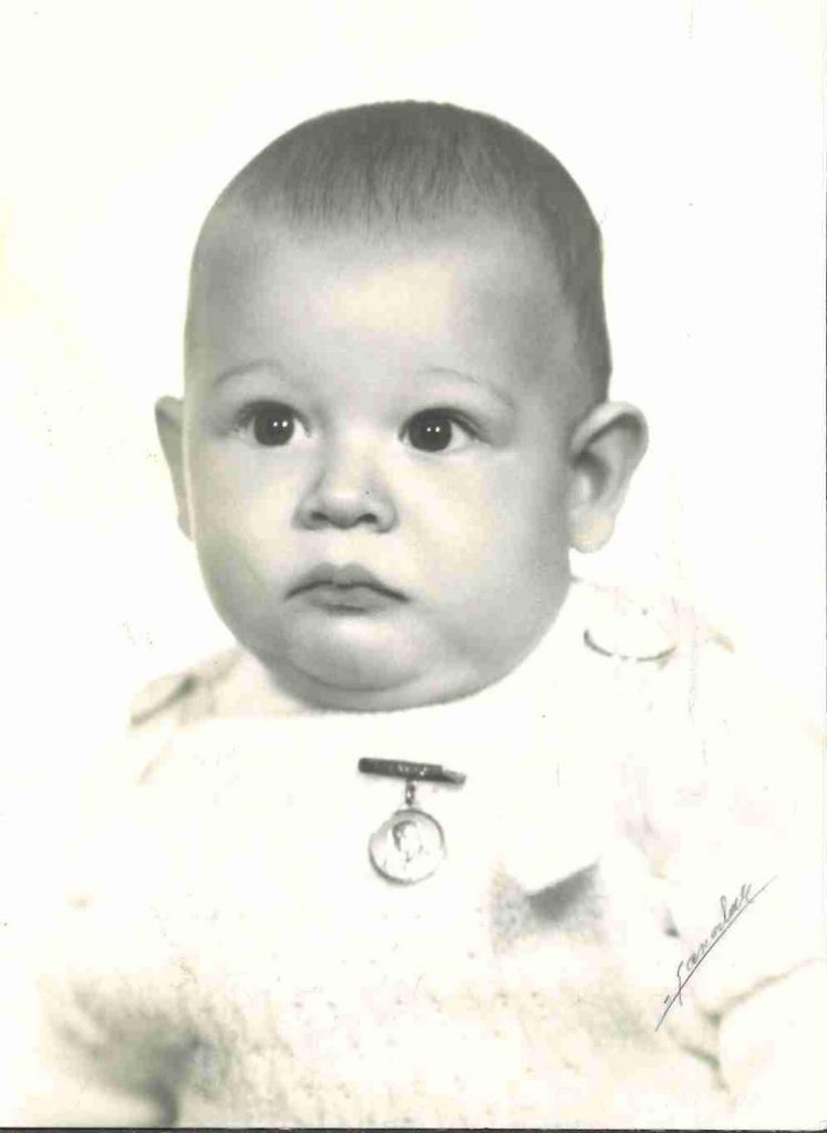 [J.A.U.] Aquesta fotografia és del dia del meu bateig. L’ha triat la meva mare, perquè es va fixar en la medalleta que portava penjada en una agulla. M’ha dit que encara la guarda…