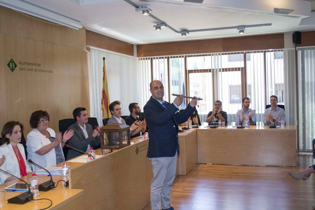 Aquesta és del dia que em van nomenar alcalde. És una experiència gratificant. Va ser una mica sorprenent, perquè em vaig presentar sense tenir-les totes de guanyar les eleccions: teníem una llista independent, d’un grup de persones molt diverses i, sovint, sense experiència. Pensàvem que, com a molt, trauríem un regidor dels 17. Però en vam treure cinc.