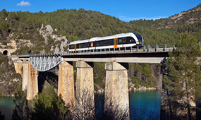 Imatge d’arxiu del tren de la Pobla creuant un pont. Foto: FGC.