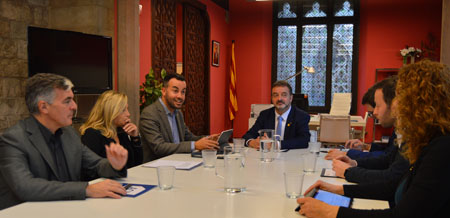 El president de l’ACM, Lluís Soler, la secretària general, Joana Ortega, el secretari general adjunt, Sergi Panadès, i la vicepresidenta de l’Àmbit de Projecció Exterior i Institucional, Àstrid Desset, s’han reunit aquest dilluns al matí amb el conseller d’Acció Exterior, Relacions Institucionals i Transparència, Alfred Bosch.