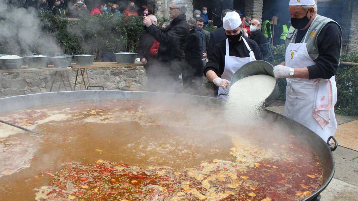 La pluja no va impedir que ciutadans i visitants omplissin les seves olles i carmanyoles, amb cues que travessaven gairebé tot el poble
