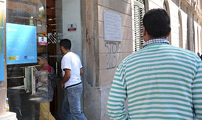 Usuaris entrant a l´Oficina de Treball de la Generalitat, aquest dimecres a Manresa. Foto: Salvador Redó.