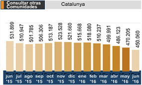 Evolució mensual de l’atur a Catalunya entre el 2015 i el 2016. Font: Regió7.