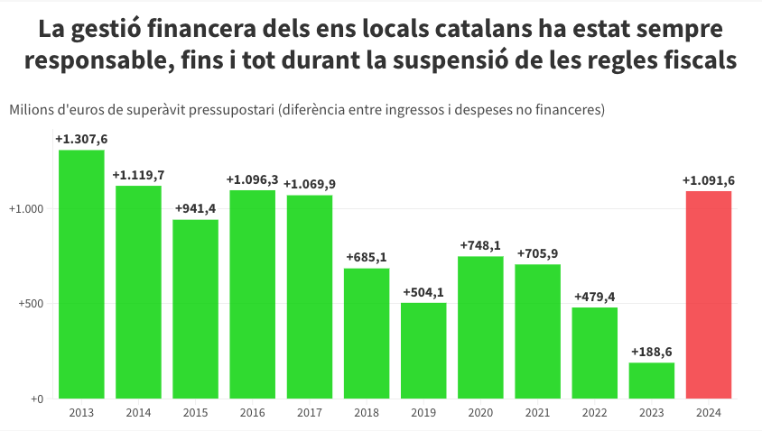 Precisament per denunciar aquesta situació, l’ACM va impulsar el 2024 l’Observatori de les Finances Locals, un portal per calcular, territorialitzar i divulgar les limitacions del model de finançament local en àmbits com l’impacte de les regles fiscals, la reforma de l’impost a les plusvàlues o les transferències de l’Estat. Una eina que traduïa en dades globals i locals i en un llenguatge entenedor les conseqüències de l’actual sistema.