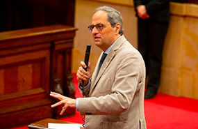 El president de la Generalitat, Quim Torra, aquest dimecres al Parlament. Foto: Regió 7.