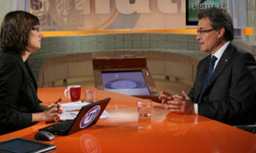 El President de la Generalitat, Artur Mas, durant l’entrevista d’aquest dilluns al matí.
