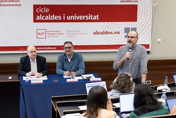 Dimecres, 15 d’abril de 2026, el Sr. Maurici Jiménez, alcalde de Castell d’Aro, Platja d’Aro i S’Agaró, va participar en el cicle de diàlegs “Alcaldes i Universitat”, promogut per alcaldes.eu i la Facultat de Ciències Polítiques de la Universitat Pompeu Fabra. L’acte va comptar amb la presència de: