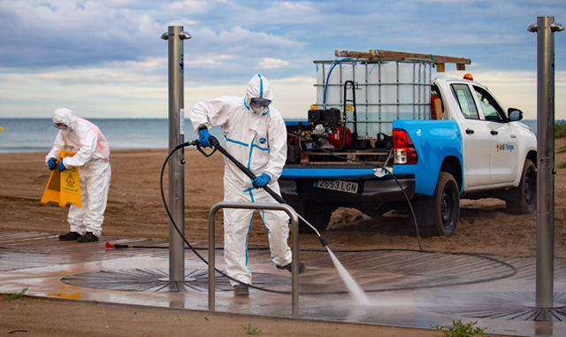 Aquest dispositiu especial de neteja després de la COVID-19 suposa un increment del 30 % dels recursos respecte a la temporada alta normal, entre personal i vehicles 4×4 amb hidronetejadores.