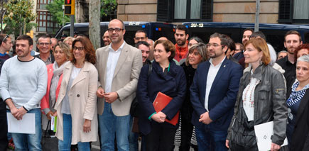 El món local s’ha concentrat aquest divendres al migdia davant la Delegació del Govern espanyol a Barcelona per mostrar el rebuig al recurs d’inconstitucionalitat que va presentar el Govern en funcions davant del Tribunal Constitucional a la Llei 24/2015 de mesures urgents per afrontar l’emergència de l’habitatge i la pobresa energètica.
