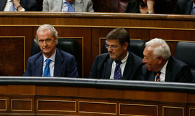 Els ministres Morenes, Catalán i Margallo, durant un ple del Congrés.