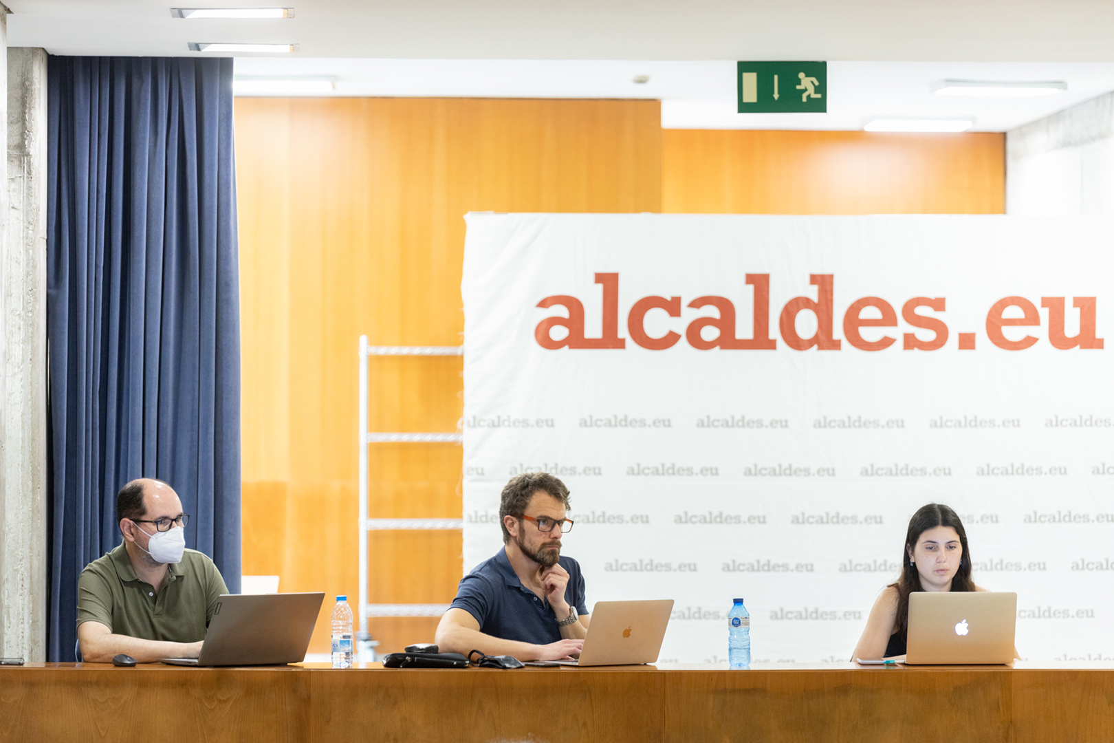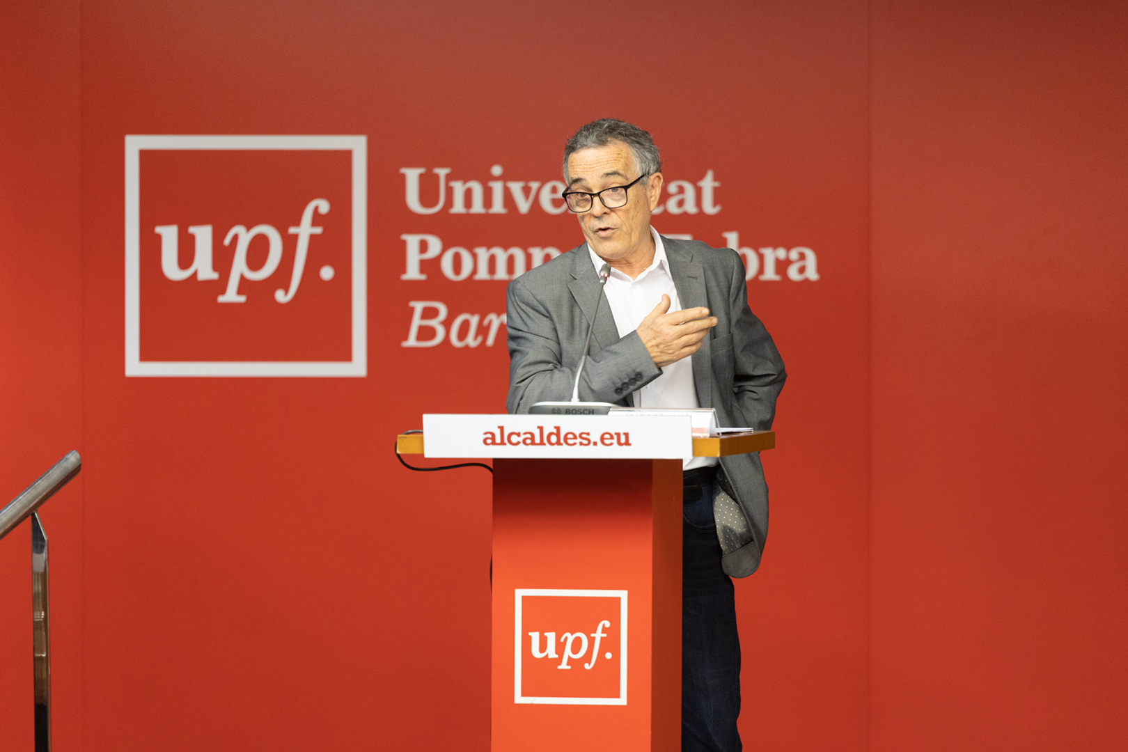El Vicerrector de la UPF, Sr. David Sancho, dona la benvinguda als participants i assistents, i posa a disposició de tots la universitat com a lloc per crear programes de polítiques públiques i d’innovació. Seguidament el moderador Sr. Berraondo explica i presenta el projecte i les activitats d’alcaldes.eu.