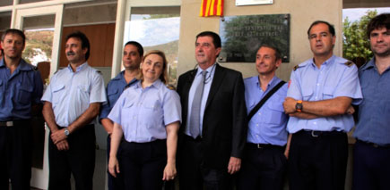 Imatge de representants del cos de bombers amb la placa commemorativa aquest dilluns a Portbou.