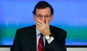 Rajoy, durant la reunió amb els barons territorials d’aquest dilluns.