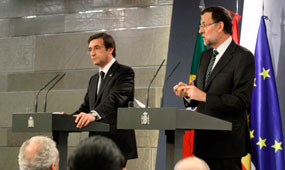 Rajoy, amb el primer ministre portugués, Passos Coelho, en roda de premsa a La Moncloa