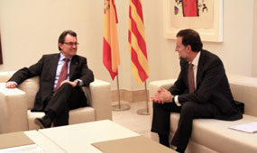 Rajoy ha dit sense embuts que "no està d’acord" amb el que planteja CiU. Ha recordat que el model de finançament que s’ha aprovat al Parlament "no ha comptat amb el seu vot i no obstant ha estat promogut i amb suport de la Generalitat". "Jo crec que es pot millorar el finançament com s’han fet en altres ocasions", ha dit, "però aquest no és el moment de crear més problemes ni inestabilitat política".