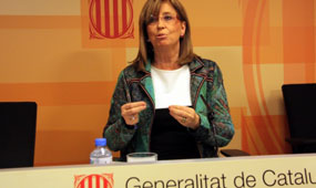 La consellera d’Ensenyament, Irene Rigau, durant la roda de premsa.