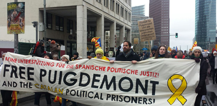 El president de l’ACM, David Saldoni, va participar ahir al matí a Berlín a la manifestació convocada per l’Assemblea Nacional Catalana sota el lema "Per una solució política: llibertat presos polítics catalans".
