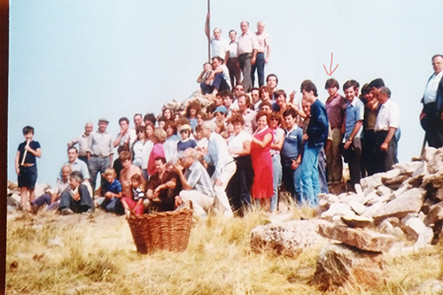A la segona hi devia tenir uns 18 anys, i hi surto on actualment hi ha el refugi de San Mamet, que abans era una pila de pedres. Allà hi anava molt a treballar la gent jove del poble. Va ser el primer dia que vam anar a netejar-ho tot, érem unes 70 o 80 persones. És una imatge vinculada amb temes socials del poble, de treball conjunt, i en un lloc molt emblemàtic que ens estimem molt.