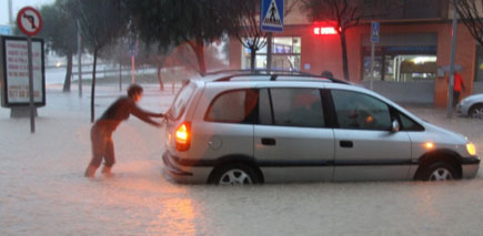 Inundacions a l’Avinguda Barcelona de Tortosa a causa de les intenses pluges.
